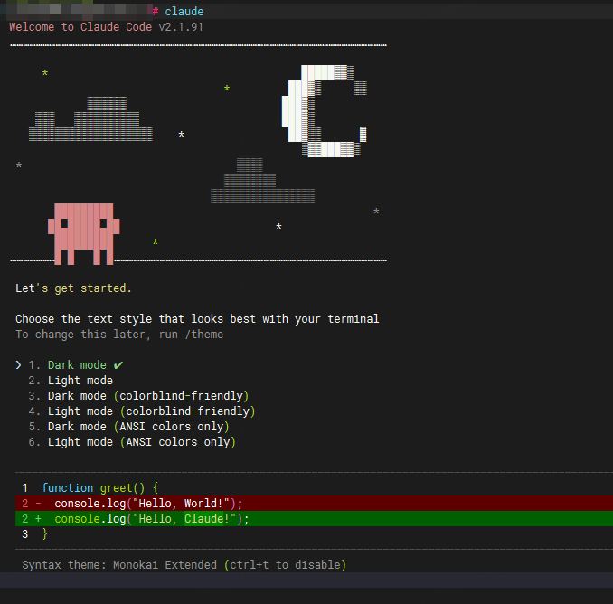 首次运行时,系统会引导你进行基础设置。首先会让你选择终端的显示主题(这不会影响功能,只影响颜色)。