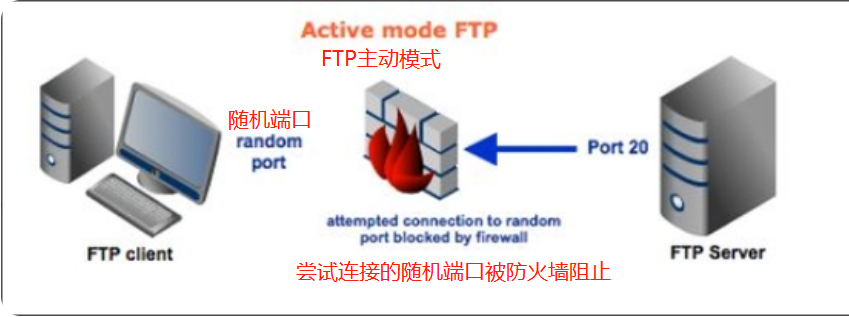 参考:https://blog.csdn.net/jingzi123456789/article/details/83409572?ops_request_misc=%257B%2522request%255Fid%2522%253A%2522165059228916780255272414%2522%252C%2522scm%2522%253A%252220140713.130102334.pc%255Fblog.%2522%257D&request_id=165059228916780255272414&biz_id=0&utm_medium=distribute.pc_search_result.none-task-blog-2~blog~first_rank_ecpm_v1~hot_rank-2-83409572.nonecase&utm_term=ftp%E4%B8%BB%E5%8A%A8%E8%A2%AB%E5%8A%A8&spm=1018.2226.3001.4450