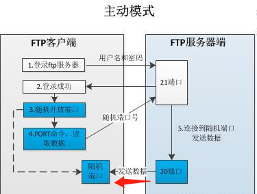 这2种模式是站在FTP服务器的角度来说,即传输数据时,服务器主动连接客户端,为主动模式;客户端主动连接服务器,为被动模式。